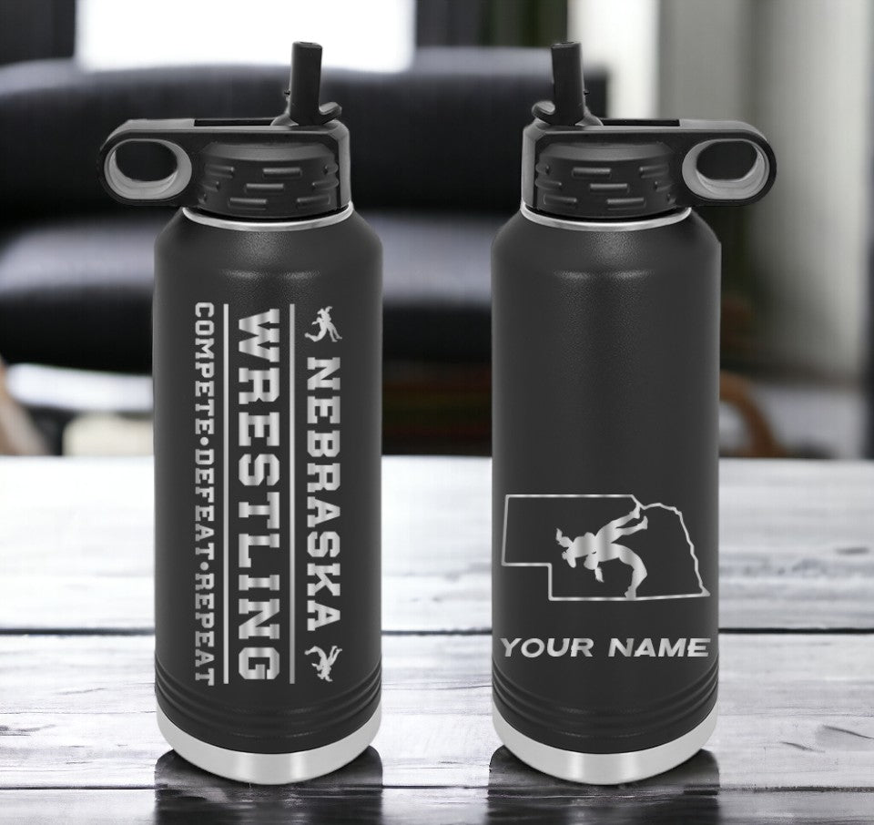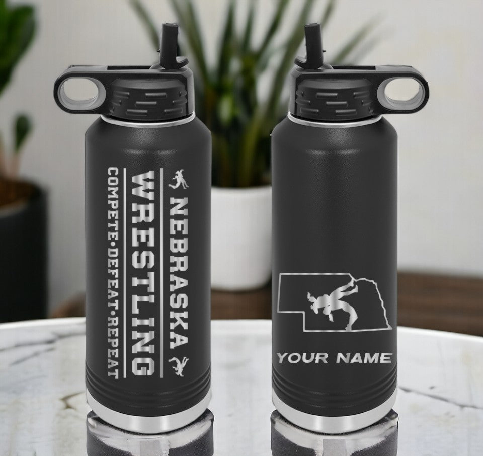 Stay hydrated with the Nebraska Wrestling Customized Water Bottle! This water bottle is custom-designed for female Nebraska Wrestlers, available in 20oz, 32oz, or 40oz. Personalize it with your first or last name and enjoy the convenience of the flip-up straw. Keep your team spirit and stay hydrated at the same time!